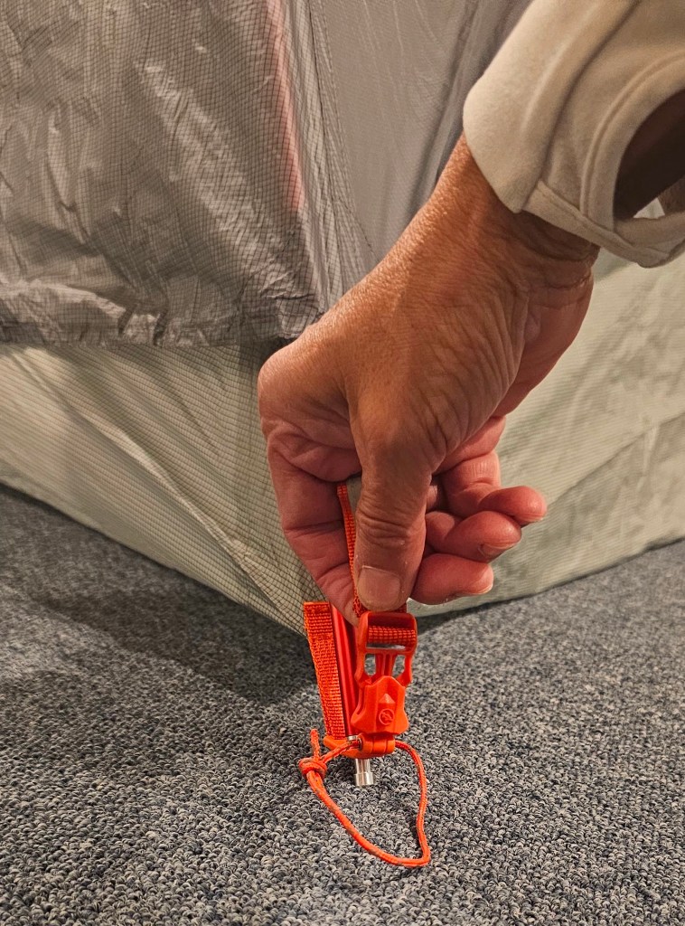 Sul campo la tenda si è rivelata molto veloce da montare. Non essendo perfettamente rettangolare, la Big Agnes ha utilizzato un metodo molto semplice per non sbagliarsi: sia le clip che le sezioni finali della paleria sono di colori differenti (arancio e grigio), in questo modo è impossibile confondersi.
