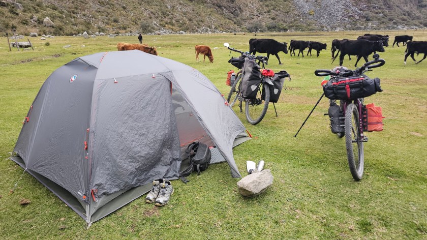 Cercando tra le varie recensioni e guardando video e foto di cicloviaggiatori, abbiamo visto che tra le tende con le migliori valutazioni c’era la Copper Spur HV di Big Agnes, in più, l’azienda del Colorado oggi vende anche un versione denominata Bikepack pensata appositamente al ciclismo; decidemmo quindi di acquistarla e fare il cambiamento. Anche questa volta, pur viaggiando in due, noi abbiamo optato per il modello da tre posti per avere più spazio anche se questa scelta comporta circa 300 g in più di peso.