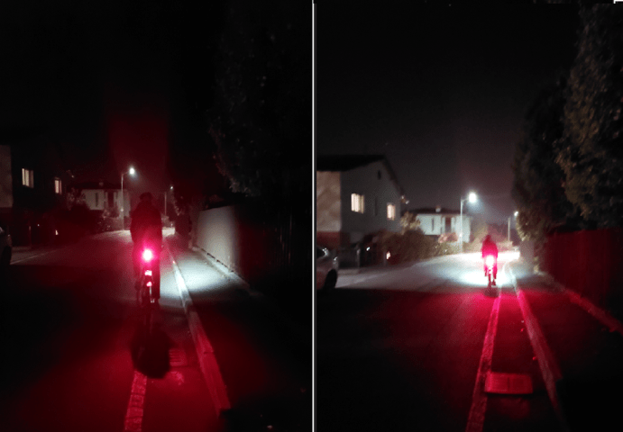 Il nostro primo test è stato fatto di sera in città e quindi con un po’ di disturbi “luminosi”, ma come si può vedere nelle immagini seguenti, il risultato è ottimo, la potenza di questa luce è perfetta per essere visti anche a grande distanza. I ganci per montarla sono facili da istallare e molto stabili (vengono fornite anche due fascette a strap per essere sicuri di non perdere nulla). Per motivi di sicurezza noi abbiamo l’abitudine di utilizzare la luce posteriore sempre, anche in pieno giorno in modalità lampeggiante.