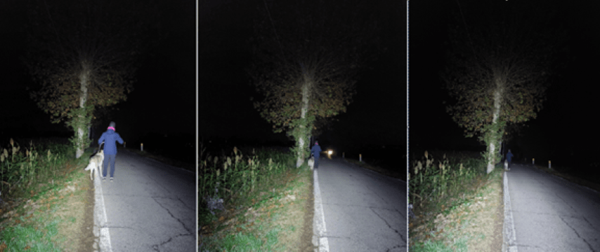 Abbiamo provato la RN2000 in aperta campagna ed in una zona completamente buia. Le immagini seguenti sono state fatte a circa 5-10-15 metri, il soggetto è perfettamente visibile. Cosa dire della potenza? Un’auto ad oltre cento metri ci ha lampeggiato chiedendo di “abbassare” il faro, direi che questo segnale ci ha fatto capire quanto questa luce sia potente.