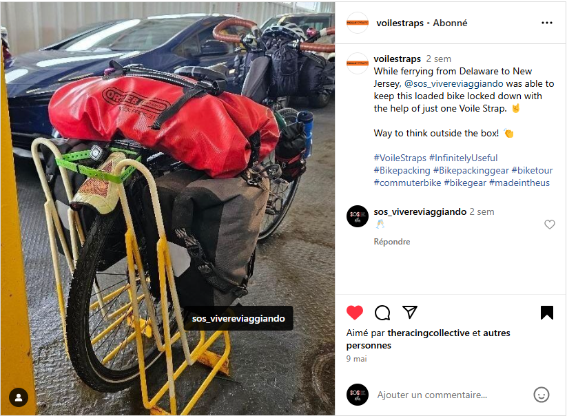 Pagina Instagram dell’azienda con una delle nostre bici sul traghetto per il New Jersey
