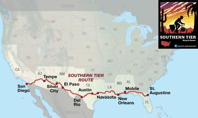 Giorni di viaggio: 38 Distanza percorsa: 2.800 km Metri di dislivello positivo: 20.000 metri circa Tappa più lunga: 133 km Forature: ZERO!!! Grazie ai nostri magnifici pneumatici Incontri di altri ciclisti sul Southern Tier: Una coppia inglese, una coppia del Minnesota, altre due coppie americane, Greg Youle dell’Idhao, un altro ciclista solitario del Massachussetts.