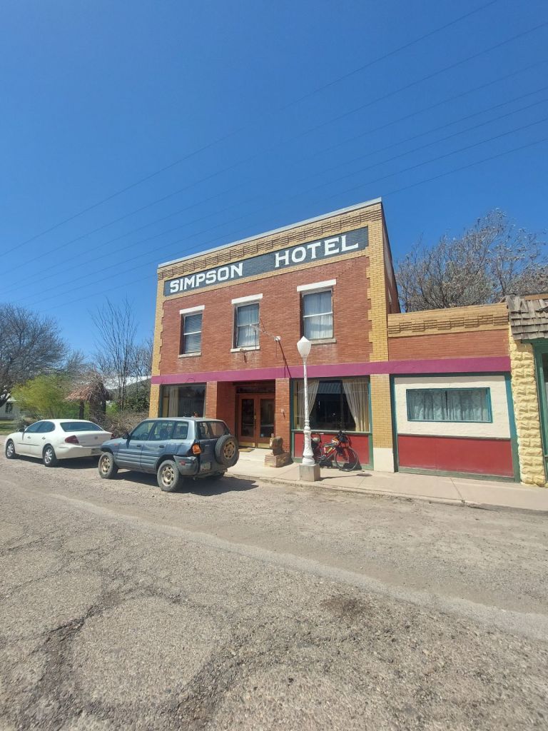 Dormiremo al SIMPSON HOTEL, la facciata è da vecchio film americano, quando entriamo troviamo l’interno di una casa della East Coast. Il proprietario è un personaggio simpatico e colto, un americano atipico, la moglie è buddista e lavora a Hollywood, lui è un artista del legno e materiali plastici. Costruisce di tutto, ci mostra il suo giardino e le sue opere, una bravura mozzafiato. Coltissimo, spara citazioni latine su Marco Aurelio e ragionamenti da intellettuale, l’esatto contrario di ciò che abbiamo trovato fino ad oggi. Ceniamo in un ristorante locale mediocre, guardando la fauna americana e pensando al nostro ospite di questa sera. Pianifichiamo la prossima giornata direzione LORDSBURG poi SILVER CITY con un day off, poi EMORY PASS, HILLSBORO, LAS CRUCES, e finalmente il Texas. Fuori fa freddo.