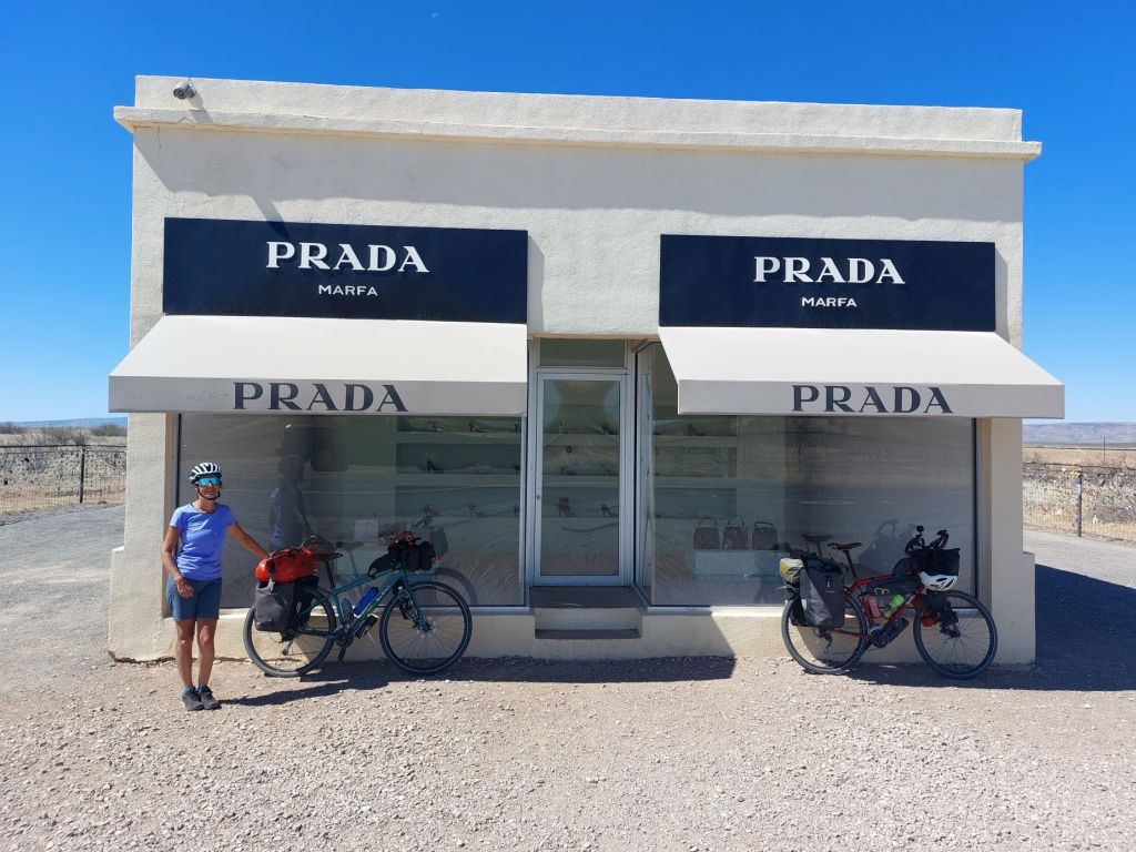 Prima di Valentine, arriviamo al famoso Prada di Marfa. Un finto negozio con un’esposizione autentica della collezione di Prada autunno-inverno 2005. A Valentine, mangiamo comodamente seduti dietro la Public Library, poi si ricomincia.