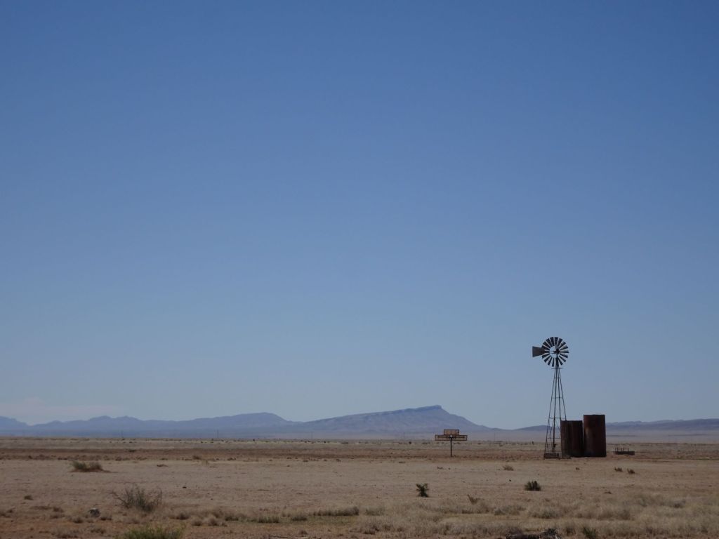 Fa molto freddo ed in tutti i 60 km, non troveremo un solo riparo per mangiare; c’è un leggero vento da dietro ed è molto freddo, nonostante i 20°. La cittadina fa schifo, spesa al supermercato e passiamo la notte in una cabin di un campeggio Koa. Noi arriviamo presto in campeggio, poi piano piano arrivano i grandi RV con targhe diverse da NM e stati limitrofi. Come vicini, abbiamo una giovane famiglia del Québec ed un furgone UHAUL. Di fronte un’auto in cui dormiranno due donne ed un cane. Sono turisti? Sono un trasferimento, in genere nel Nord America UHAUL=moving e qui siamo in un posto sperduto vicino alla I-10. Ci viene in mente una frase di Terzani sugli americani ed i pick-upletta nel magnifico libro “Un altro giro di giostra”:“Quel furgoncino col cassone posteriore aperto, che vedevo davanti a ogni casa, divenne per me, il simbolo dell’America in cui nessuno vive nel posto in cui è nato o muore nel posto dove è vissuto, in cui tutti sono indipendenti e sconosciuti in mezzo ad altri indipendenti e sconosciuti coi quali, per un breve periodo di tempo, giocano ad essere in grande intimità.“