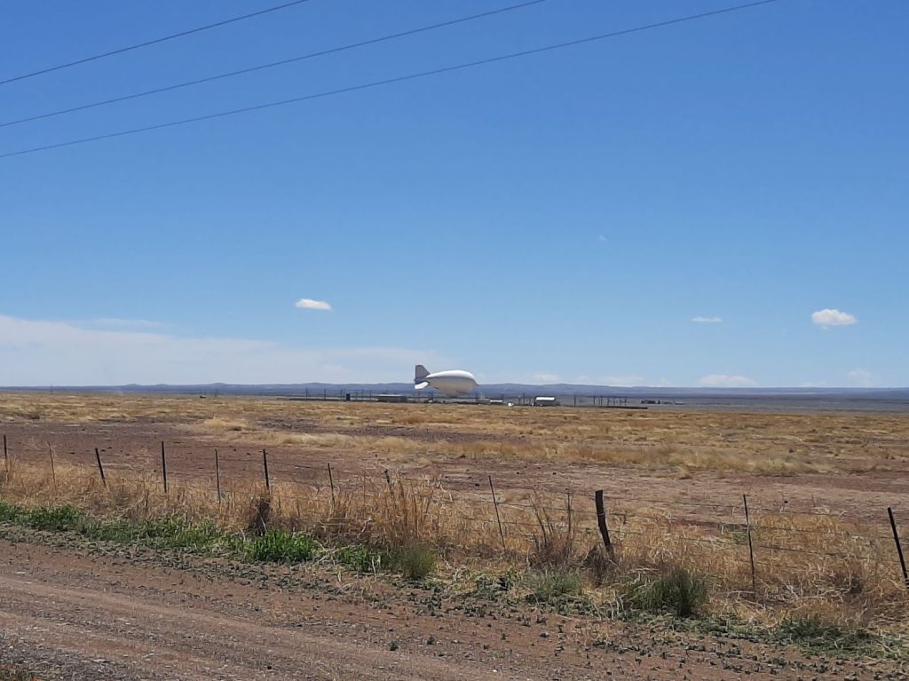 Altri 35 km e passiamo vicini all’aerostato della Border Protection che oggi è a terra. Questo aerostato presente in diverse postazioni del governo USA lungo il confine messicano, viete fatto salire fino a 5.000 metri per controllare eventuali movimenti sospetti nelle terre limitrofe.