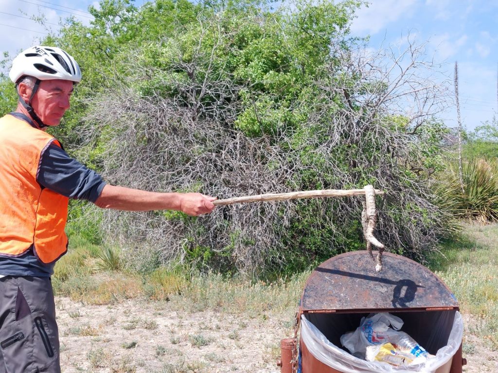 Comunque il museo (ingresso gratuito) vale la sosta, leggiamo un po’ di storia del Texas e visitiamo un bel giardino di cactus. Si continua fino al SEMINOLE S.P. CAMPGROUND, paghiamo il campeggio autonomamente, poiché arriviamo abbondantemente oltre l’ora di chiusura. La tanto agognata macchinetta della Coca Cola la vediamo solo dalla porta a vetri della reception. Fa caldissimo, il vento non smette e sembra che domani sia la stessa cosa, ma a partire dalla la mattina presto. Purtroppo, la nostra applicazione Windy è raro che sbagli. Siamo morti di fatica, ci siamo fatti 50 km con vento frontale e 38° in ‘sto ca**o di deserto di Chihuahua, il più grande del Nord America tra le altre cose. Montiamo la tenda e non abbiamo nessuna voglia di cenare, abbiamo solo voglia di farci una doccia ed andare a dormire.