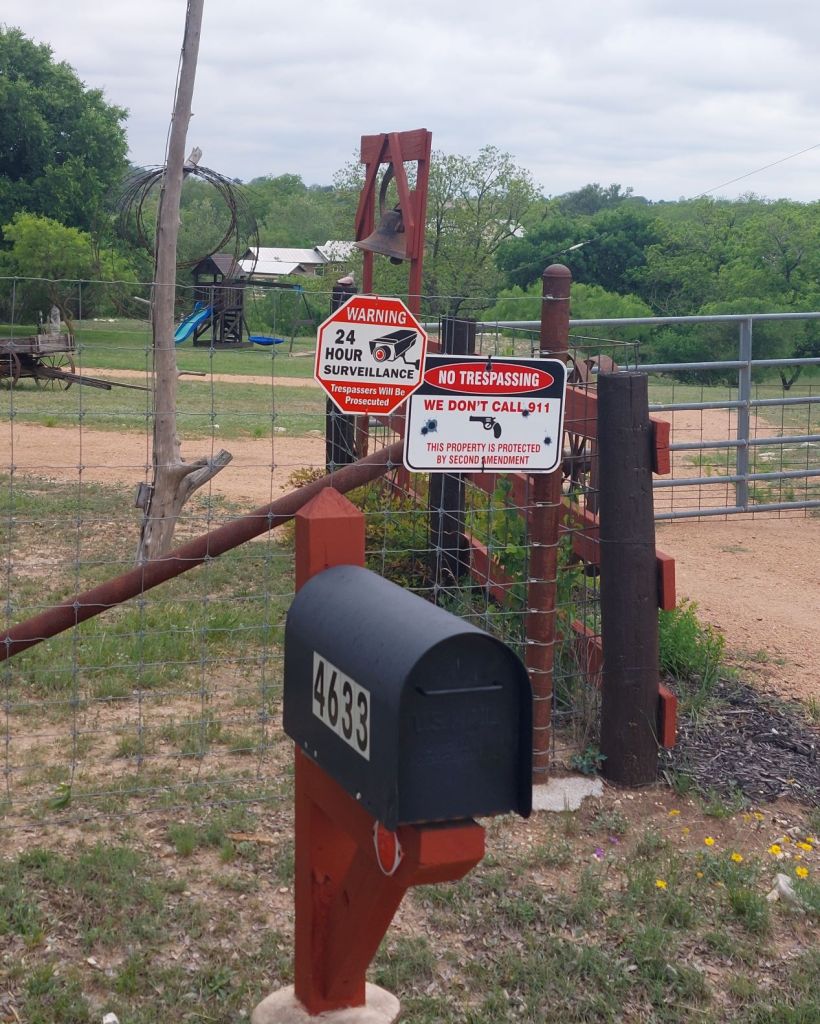 La sveglia, comincia a suonare alle 7, ma partiamo con molta calma, quasi tre ore dopo. Poca voglia, fa freddo, c’è vento ed è nuvolo. Usciamo da Kerrville e dopo una decina di chilometri siamo su un altopiano molto carino: pascoli, belle case, molti caprioli. Fa molto freddo, ma bisogna anche ammettere che siamo poco vestiti per la temperatura. Sono solo 50 km che facciamo oggi per non stare a Kerville dato che minaccia pioggia. Scesi verso la cittadina di FREDERICKSBURG ci fermiamo sotto il porticato di una chiesa per cercare l’albergo riparati dal vento. Sulla porta c’è un bellissimo avviso in cui si prega di non entrare armati in chiesa. Pochi chilometri prima, fuori da una casa, avevamo trovato un’altro cartello: Noi non chiamiamo il 911, ci difendiamo con il secondo emendamento.