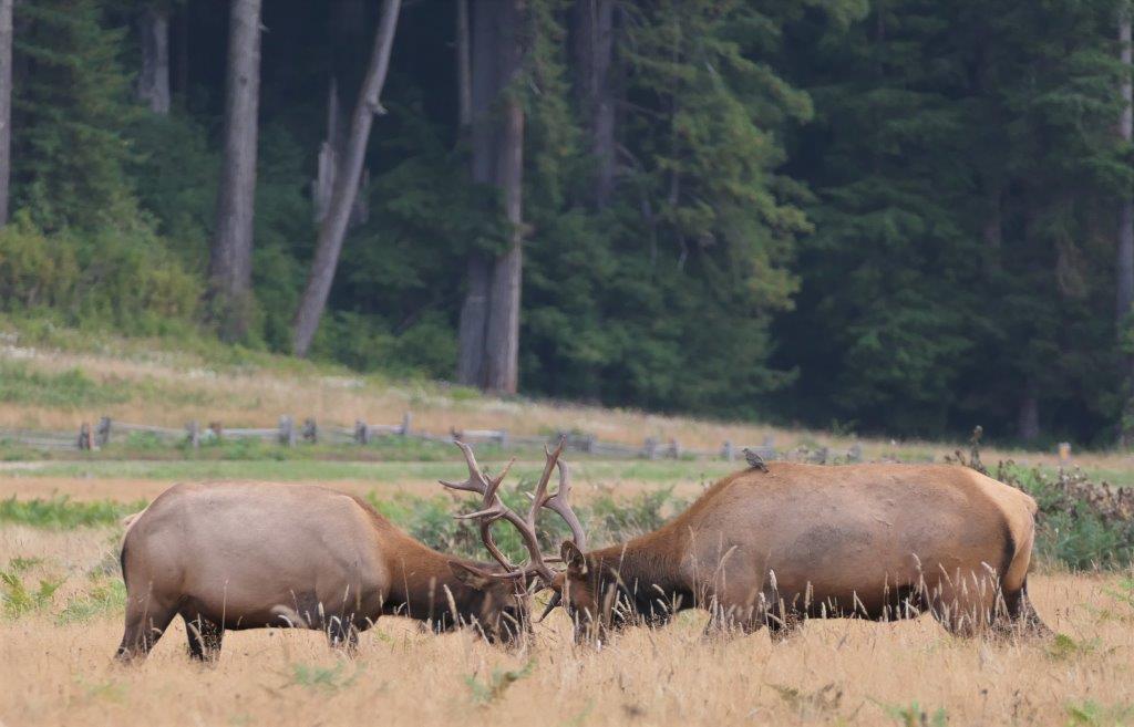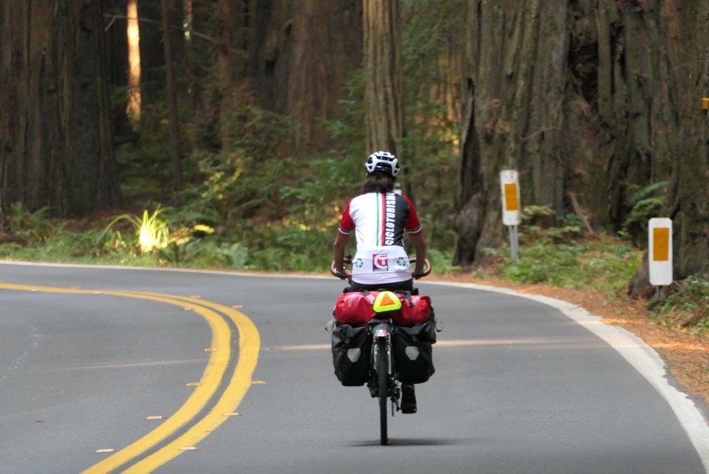 Il pomeriggio arriviamo all’Elk Prairie Campground. Un magnifico posto tra altissime sequoie e prati in cui pascolano gli elk (detti anche wapiti o cervi canadesi); mentre montiamo la tenda possiamo vederne una ventina poco distanti da noi. Poco dopo, arriva un altro ciclista e lo riconosciamo subito, è il “fighetto” del giorno prima. Parlando con lui la nostra opinione cambia, questo è Superman: Simon ha 78 anni! Originario di Taiwan e residente a Los Angeles da oltre 40 anni, ha detto alla moglie che voleva fare la Pacific Coast per il semplice fatto che o adesso o mai più. Resteremo in contatto con lui tutti i giorni, ritrovandolo ancora un paio di volte prima di distaccarlo definitivamente dopo San Francisco.