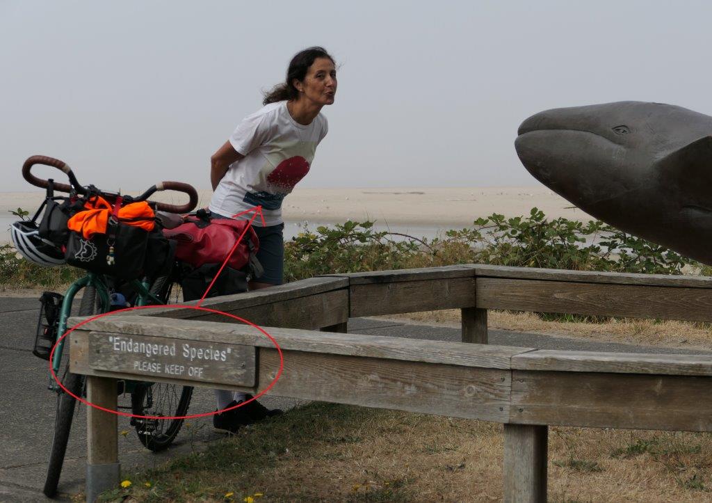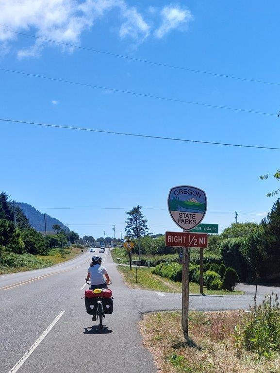 Giorno dopo giorno incontreremo gente diversa, a volte socievole a volte solitaria. Alla reception del campeggio di Brookings incrociamo per la prima volta un ciclista che arriva pochi minuti prima di noi. Questo tizio arriva velocemente, quasi senza salutare, paga, si dirige al suo sito e monta la tenda, piuttosto fisicato e… fighetto. Boh, in viaggio si incontrano ciclisti di ogni tipo.